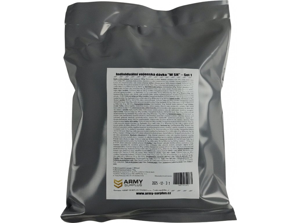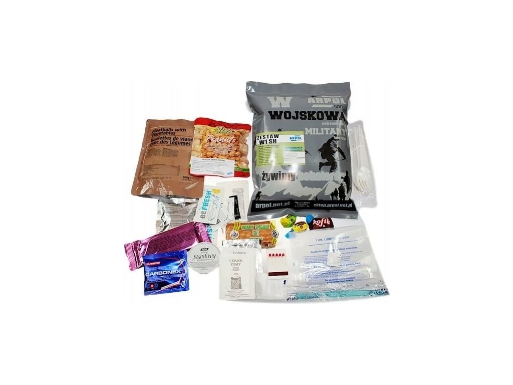 Tyto vojenské balíčky, neboli potraviny vojenských hrdinů "Wojskowa Racja żywnościowa MILITARY Food Ration żywimy bohaterów W SH" jsou vyrobeny zakázkově z prvotřídních surovin pro naší společnost renomovaným polským výrobcem ARPOL®.