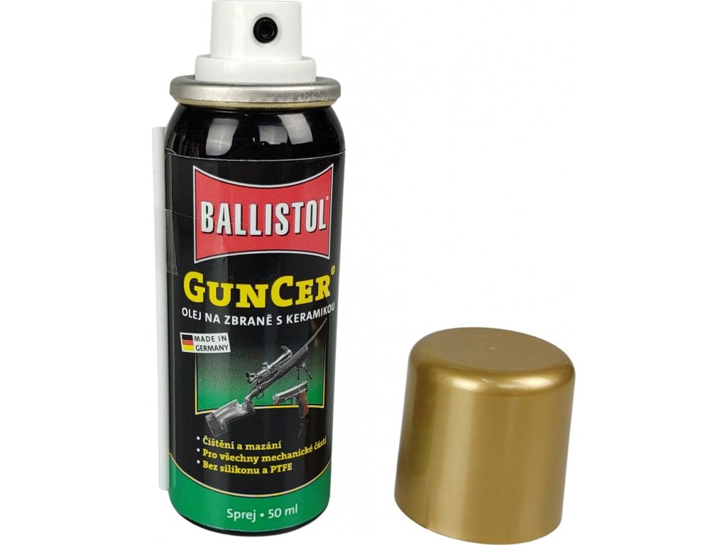 Olej na zbraně GunCer® speciální s keramikou sprej 50 ml německého výrobce Ballistol®. Vysokovýkonný olej pro zbraně a jejich údržbu.