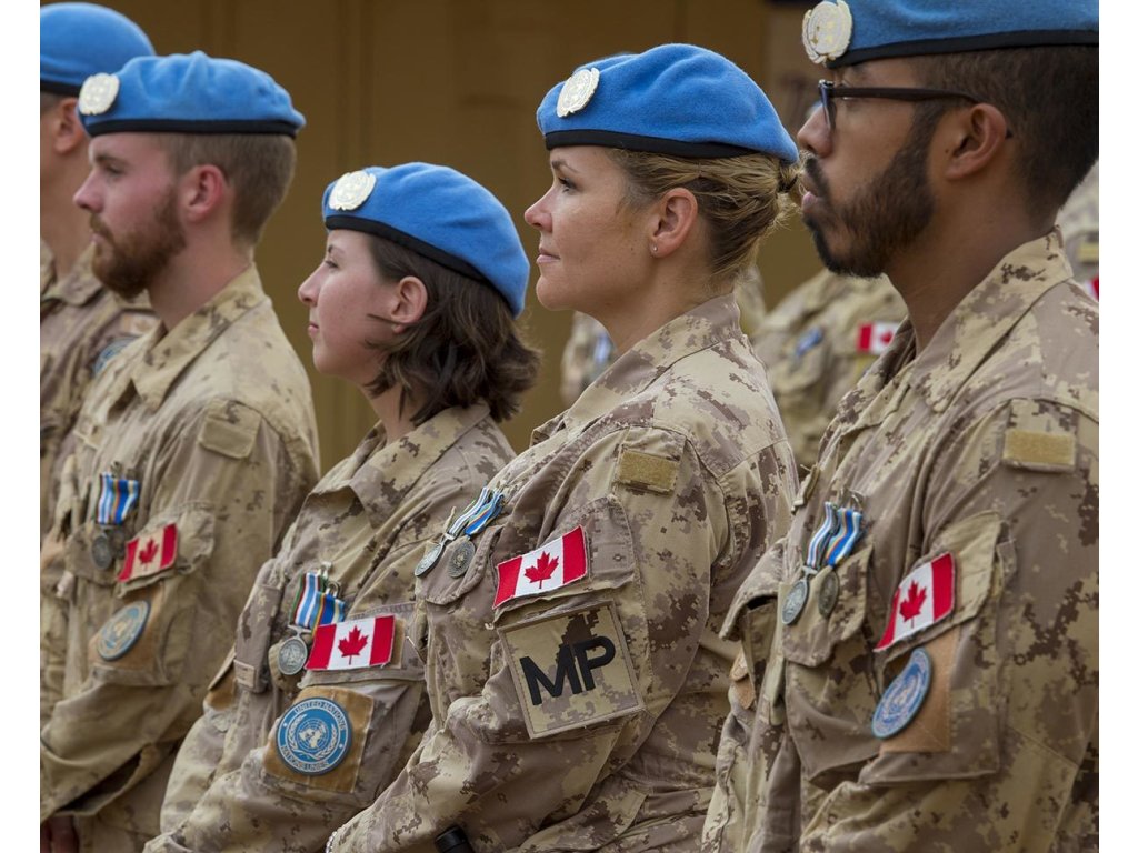- Na čelní straně je našita kulatá nášivka se znakem Organizace spojených národů (OSN).
