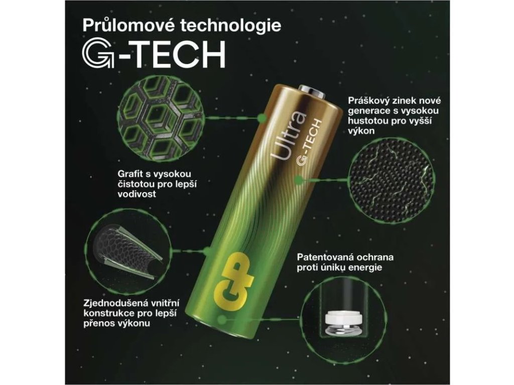 S touto novou řadou baterií od GP budete mít dostatek energie pro vaše nejnáročnější úkoly a činnosti. Nezáleží na tom, zda jste doma, v práci nebo na cestách, alkalické baterie ULTRA s technologií G-TECH jsou vaším spolehlivým partnerem pro dodávku energie, kterou potřebujete.