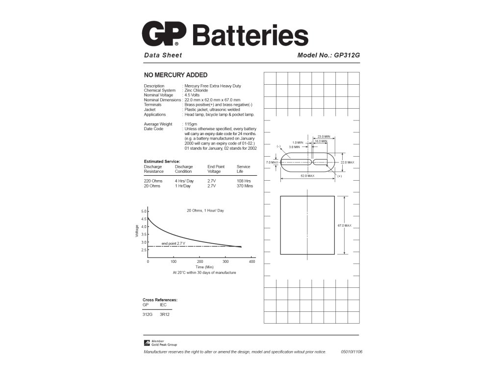Baterie zinková GP Greencell (4,5V) 3R12 (plochá)