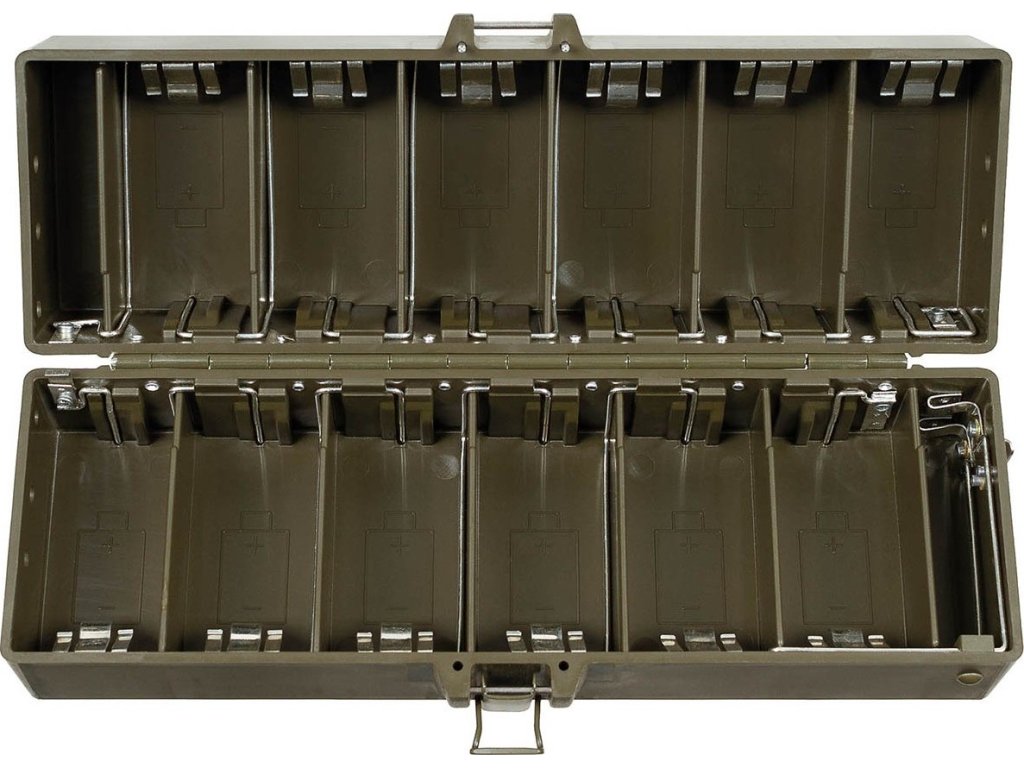 - Radiobateriový box švédské armády pro vojenské rádio „RA-140“, které se používá od konce 60. let 20. století.