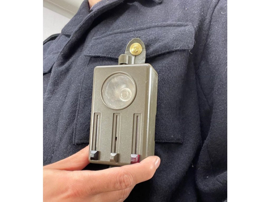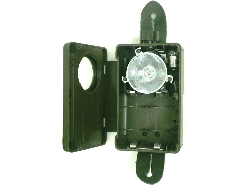 - Na zadní straně svítilny je kožený pásek se dvěma otvory pro upevnění k výstroji (např. na knoflík klopy blůzy).