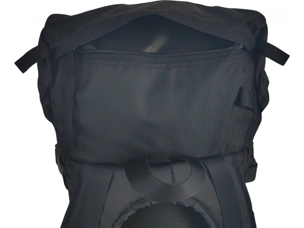 - Horní plnění hlavní komory zajištěné stahovací tkanicí a překlápěcí klopou na dvě plastové rychlospony.