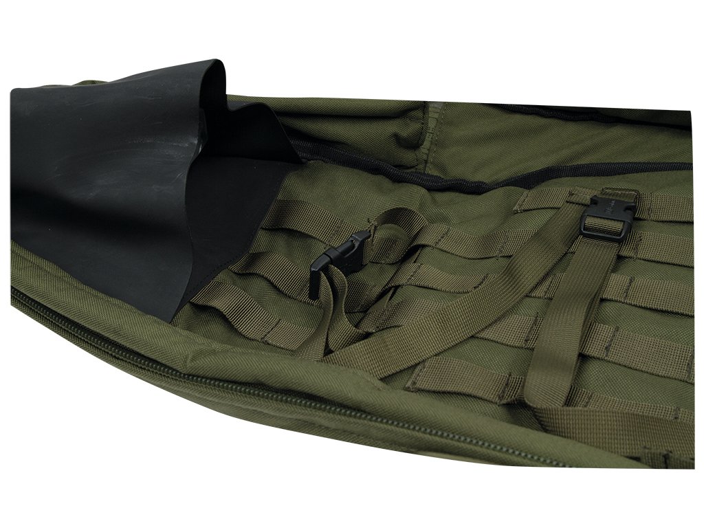 Vnitřek pouzdra je polstrovaný a k zajištění zbraně a příslušenství slouží MOLLE vazba s řadou popruhů. Delší zbraně tak lze bezpečně přepravovat v rozloženém stavu.