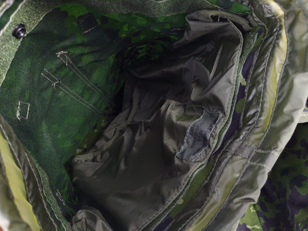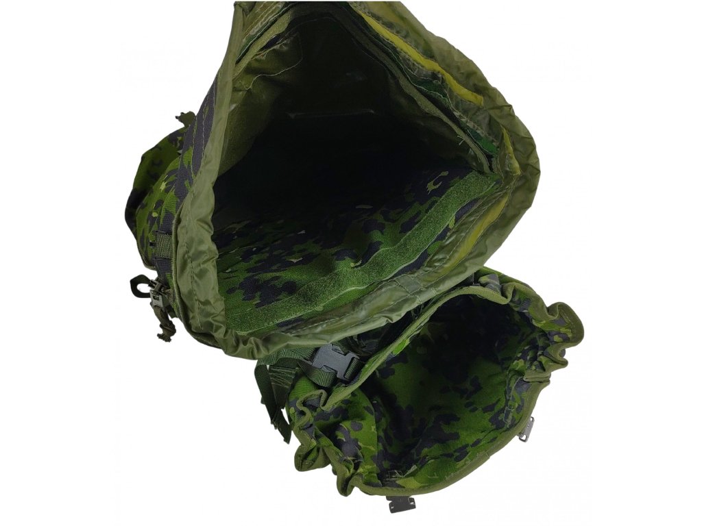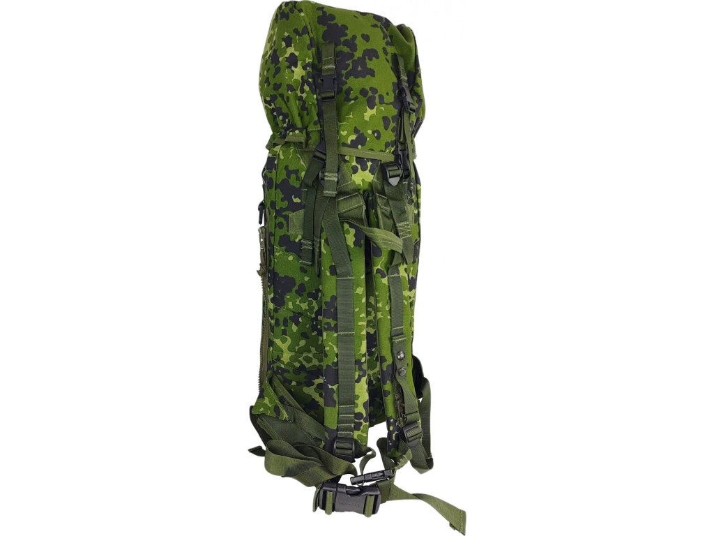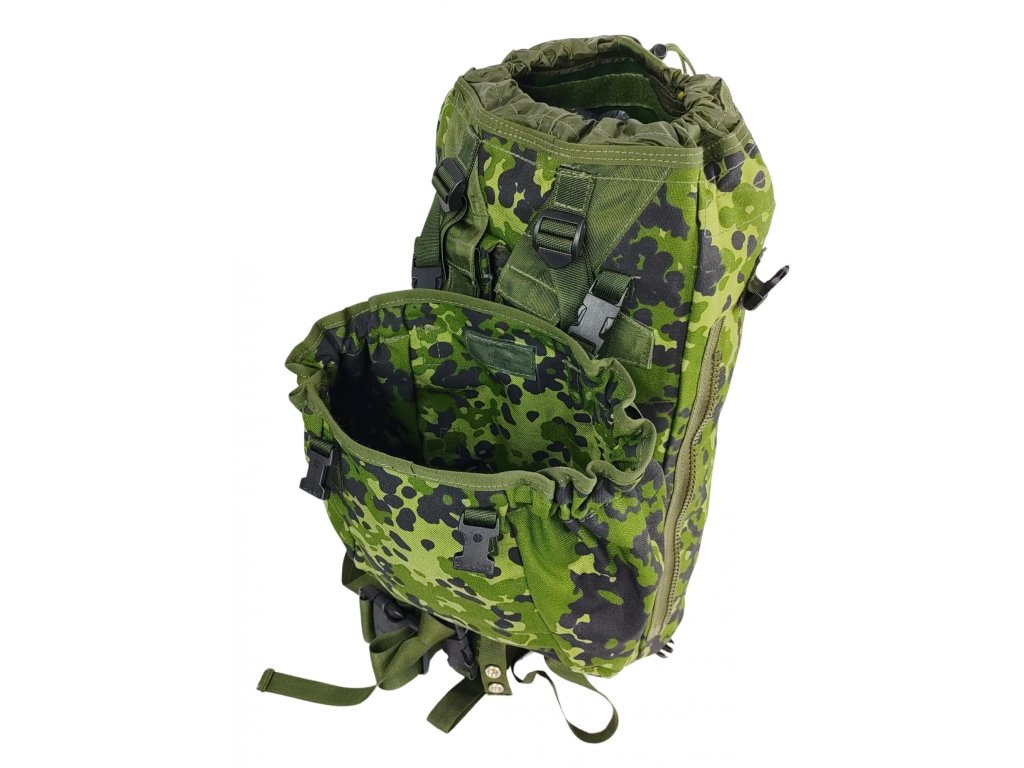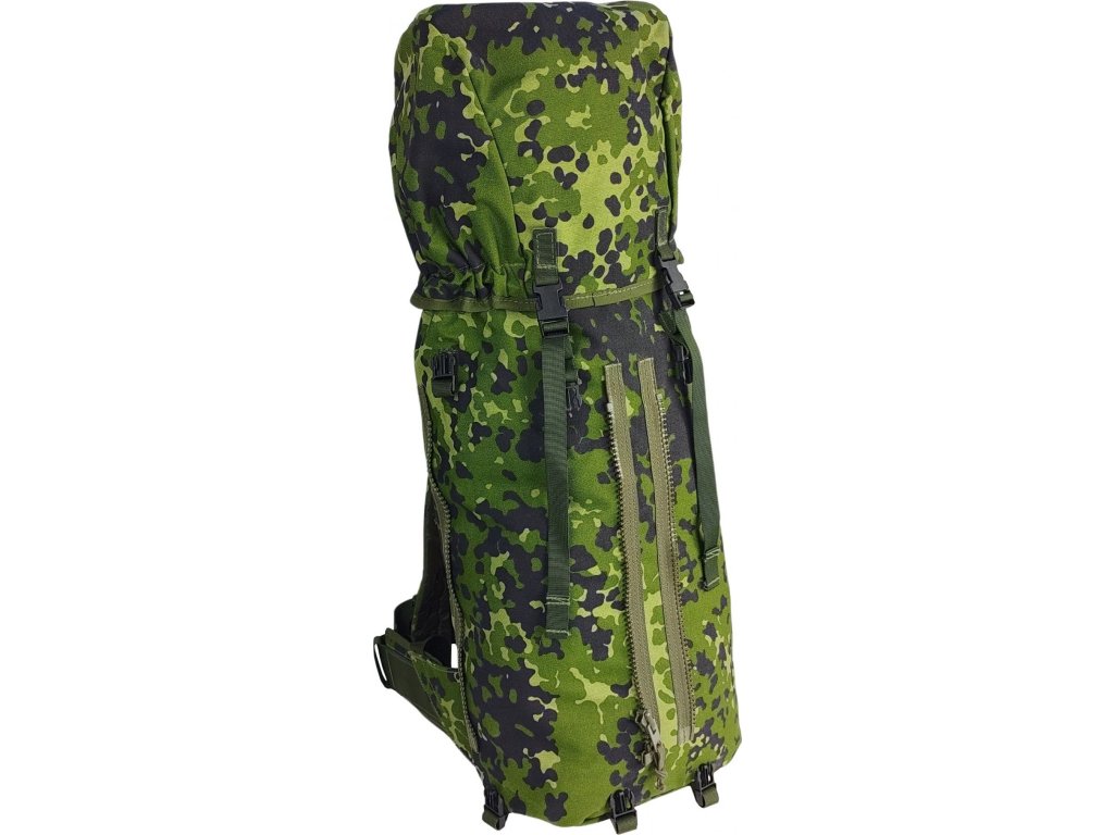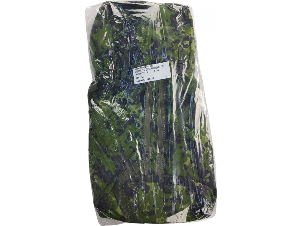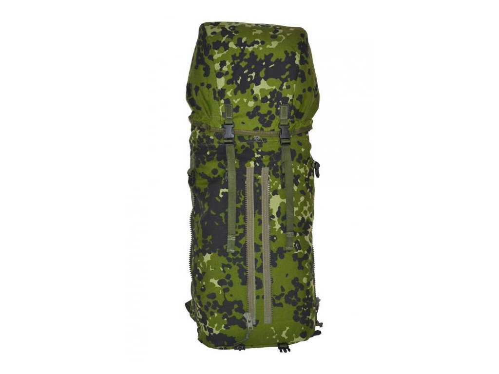 - Originální jednokomorový vojenský batoh M-1996 dánských královských ozbrojených sil, v letním maskovací kamufláží M/84, navržen jako přepravní taška na náboje do tryskových zbraní (kanónu).