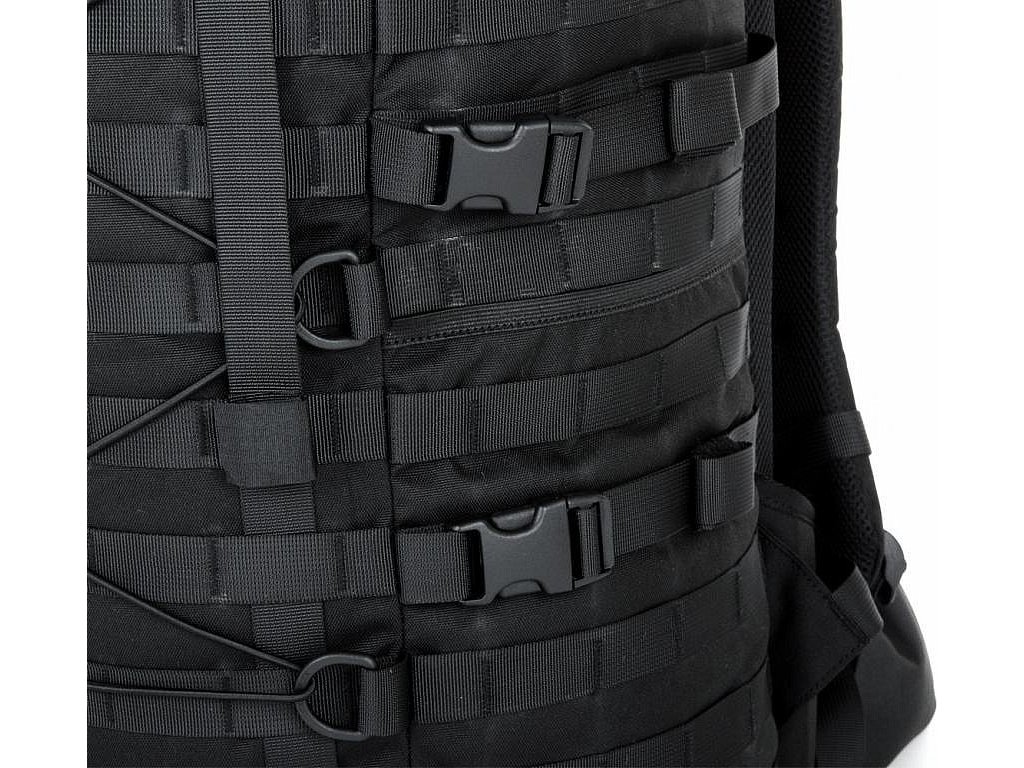 - molle systém s elastickou šňůrou s brzdou umístěný na přední a spodní straně batohu
