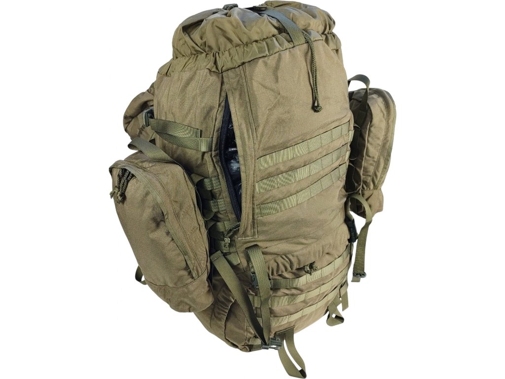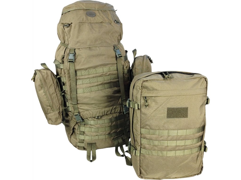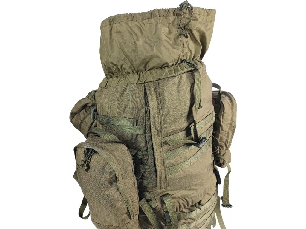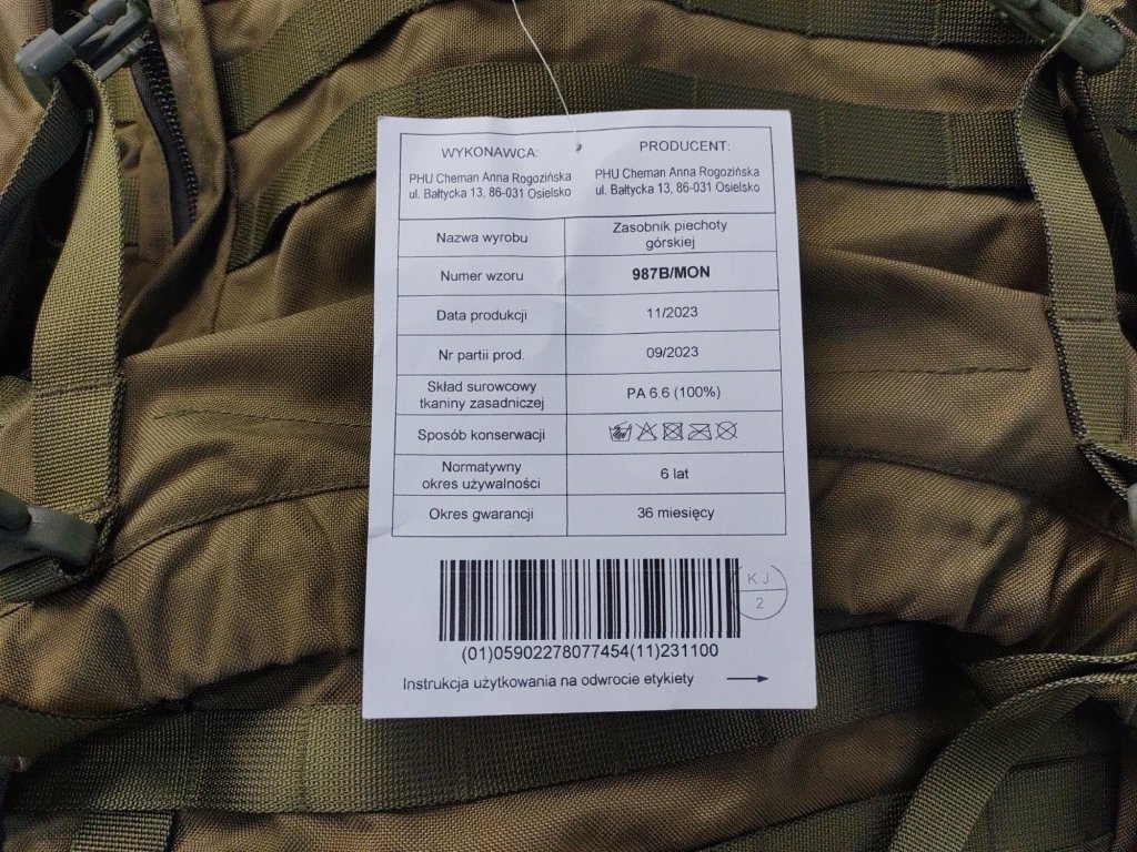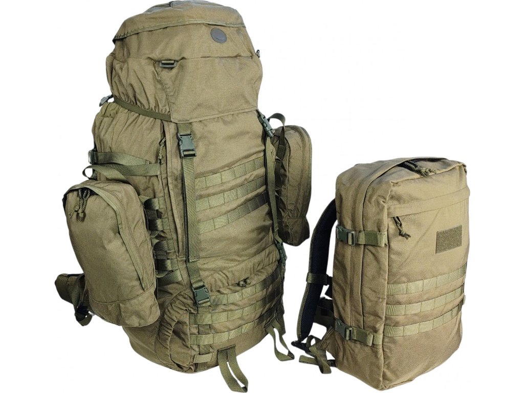 Extra kvalitní batoh polské horské pěchoty známý pod oficiálním názvem "ZASOBNIK PIECHOTY GÓRSKIEJ 987B/MON", z odolného nylonu jednobarevného, světle zelené odstínu khaki. Jde o kompletní soupravu jednotlivce, obsahující hlavní velkokapacitní batoh včetně 2 odepínatelných kapes MOLLE, jednodenní malý batoh, kamuflážní nepromokavý obal v lesním potisku Wz.93 Panhera (určený pro velký batoh nebo pro velký a malý batoh spojený dohromady) .