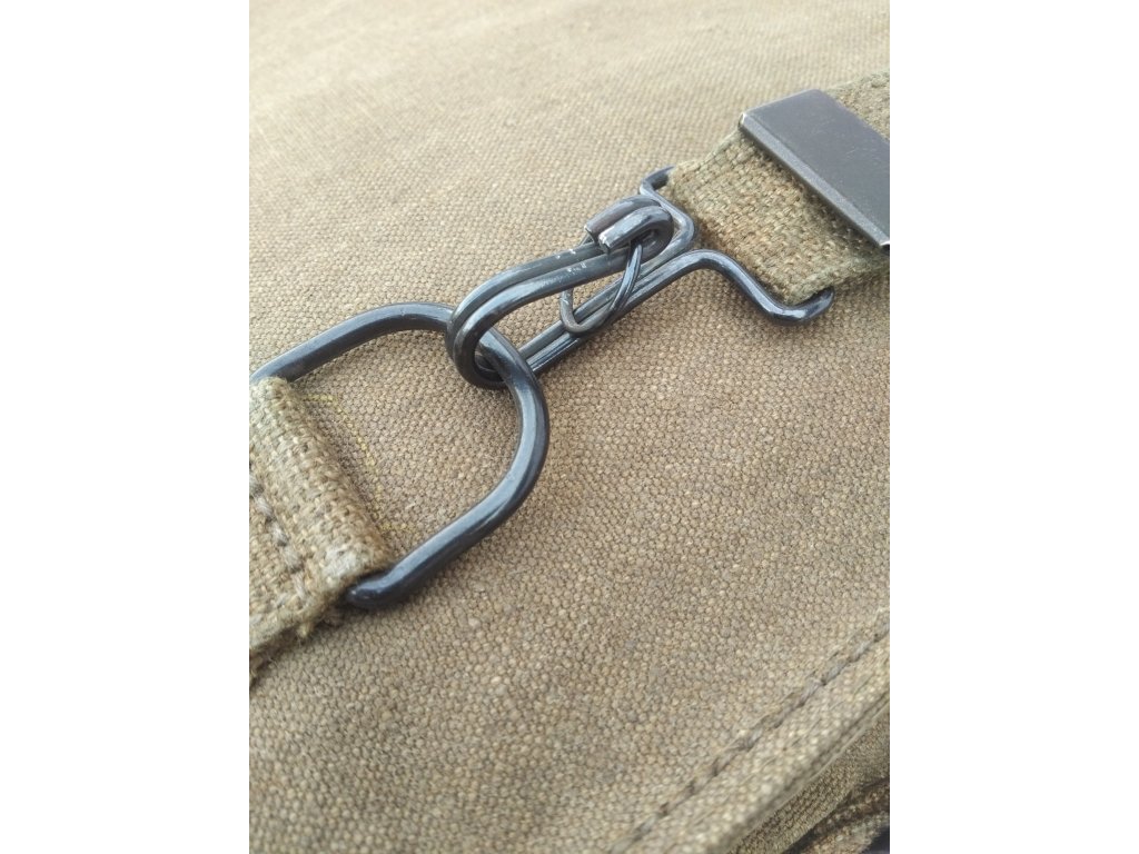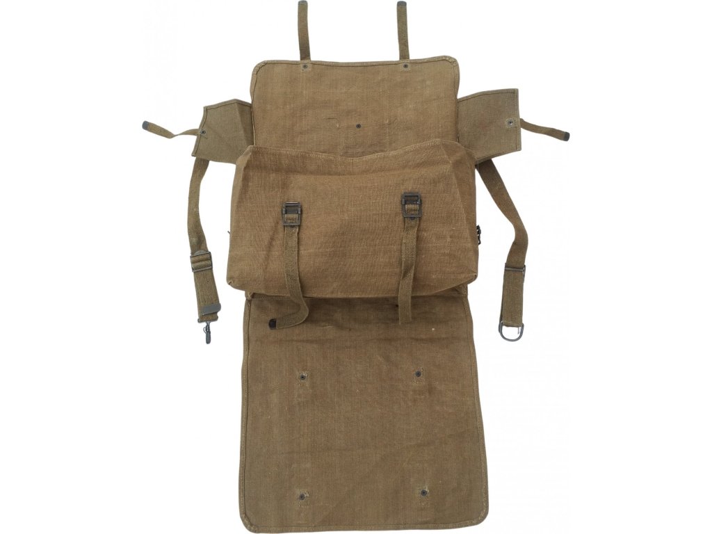 - Použité zboží (batohy nesou stopy běžného opotřebení a dlouhodobého skladování, mohou být mírně znečištěné a zaprášené nebo mohou mít drobné vzhledové vady, trhlinky nebo opravy, u některých popruhů chybí kovové koncovky a mohou být roztřepené, zkrácené nebo jinak upravené předchozím uživatelem, kovové části mohou nést stopy oxidace, relativně v dobrém stavu, vyřazené z armádních zásob).
