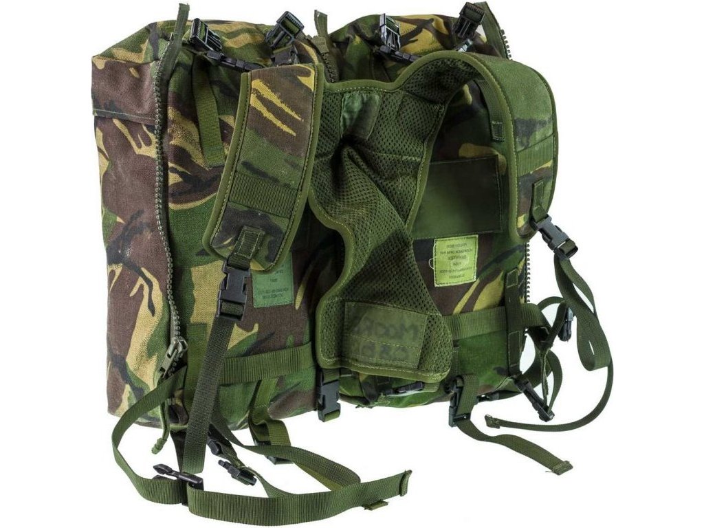 - Standardní batoh britské armády v rušivé kamufláži DPM, vyrobený z houževnaté Cordury, která je vnitřně vodotěsná.