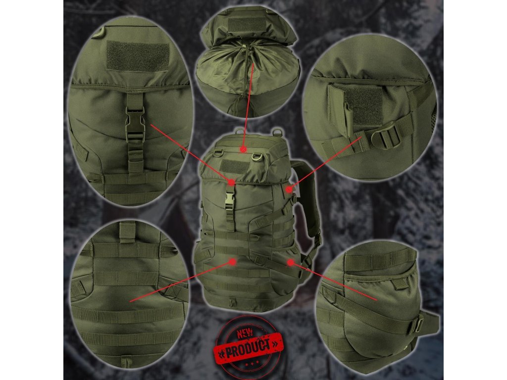 - Četné montážní pásky / univerzální vazba systému Molle umožňují rozšířit batoh.