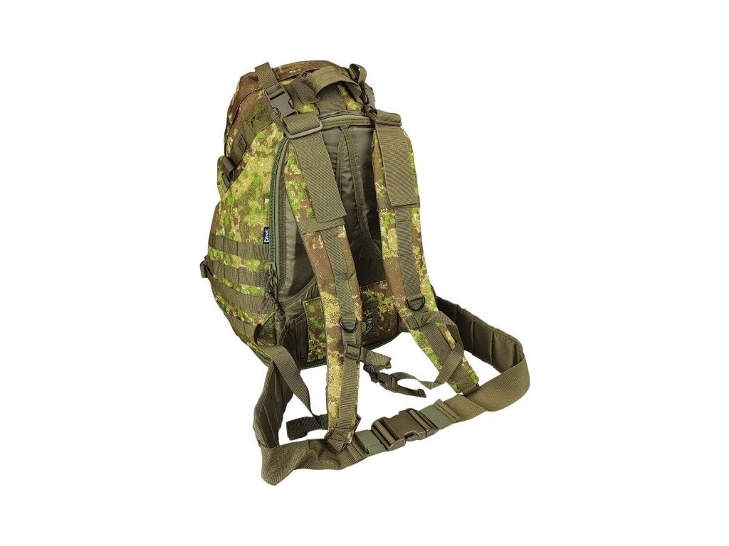- na bočních stranách, vespod a vpředu jsou montážní pásky (Molle) pro upevnění sumek a dalšího příslušenství