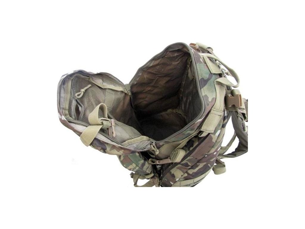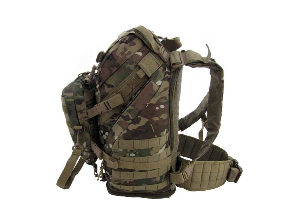 - na bočních stranách, vespod a vpředu jsou montážní pásky (Molle) pro upevnění sumek a dalšího příslušenství