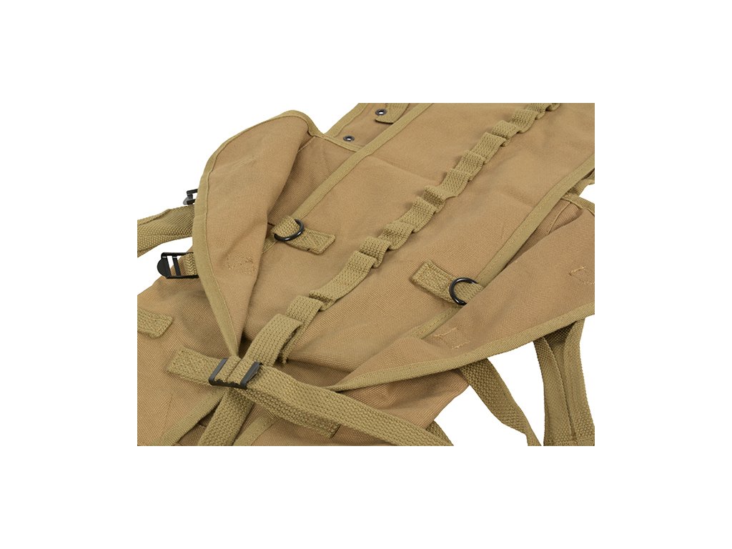 Ať už to bylo v džungli jižního Pacifiku, v pouštích severní Afriky, v živých plotech v Normandii nebo na německé dálnici, toto byl standardní batoh, který nosil téměř každý běžný voják americké armády ve druhé světové válce. Tento batoh byl komplexně navržen tak, aby přepravoval další spodní prádlo, osobní věci, příděly, přikrývky, přístřešky a další předměty, které každý voják na cestách potřeboval.