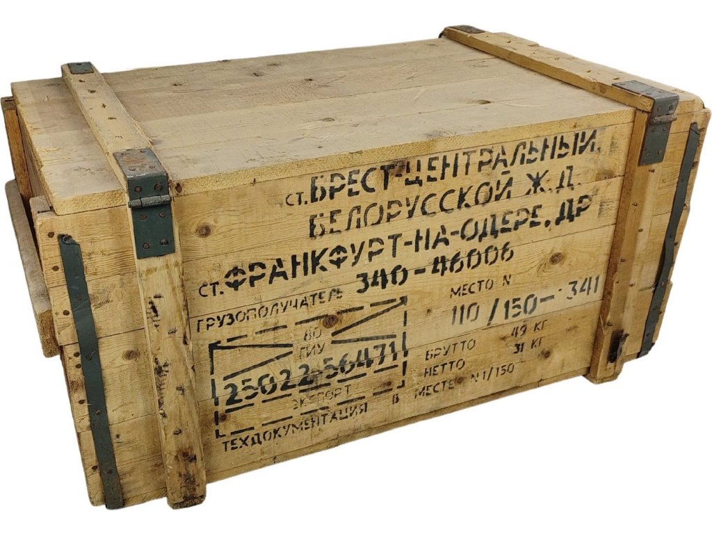 - Sovětská/Ruská dřevěná robustní bedna od plynových masek, užitečná nejen do dílny.