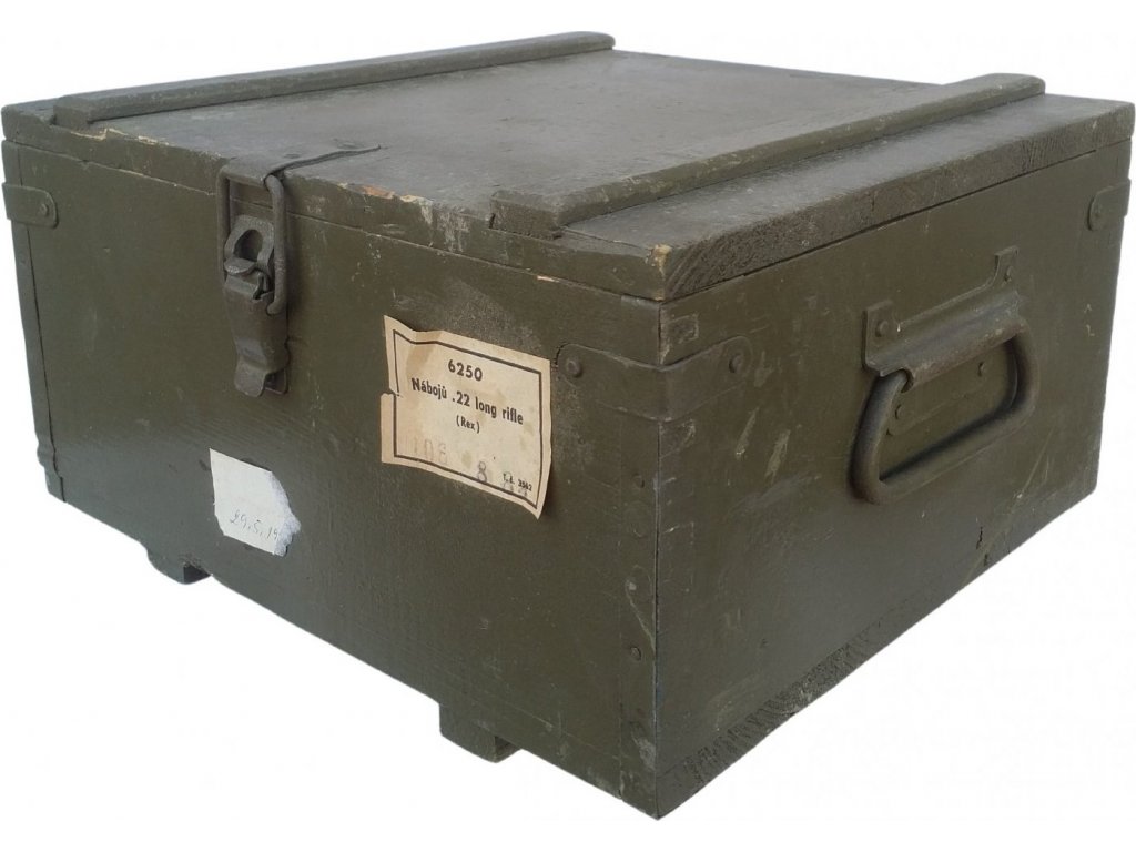 - robustní dřevěná bedna od nábojů .22 long rifle ( 5,6x15mmR),nebo 7,62 -Cv 43
