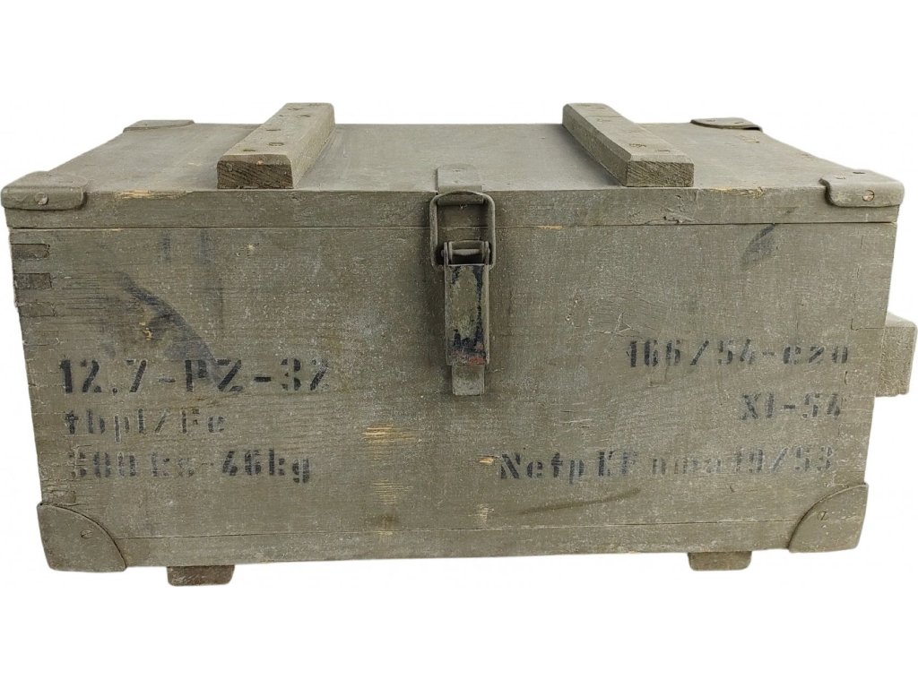 - robustní dřevěná bedna / muniční truhla původně k uložení průbojných zápalných nábojů 12,7 PZ 32