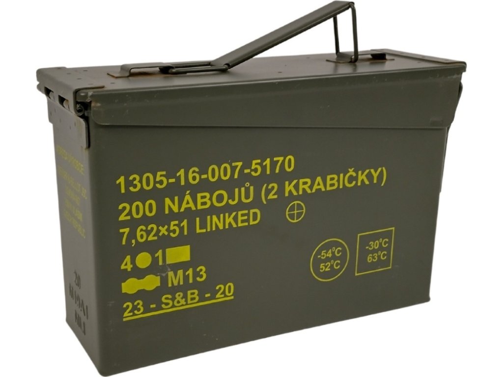 - Hermeticky uzavřená přepravní schránka od standardní munice 7,62 mm (200 kusů) - prázdná.