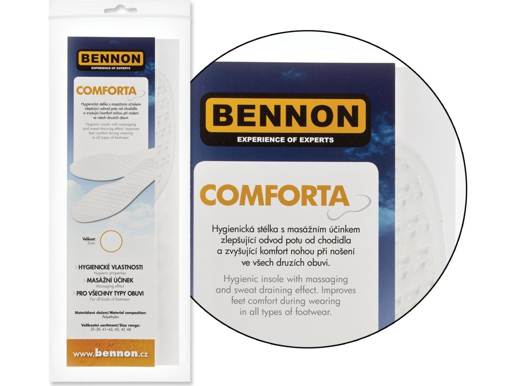 Masážní vložky do bot Bennon Comforta Insole jsou navrženy pro zvýšení pohodlí při chůzi, práci i dlouhodobém stání. Díky speciálnímu tvarování a masážním bodům stimulují chodidlo, pomáhají snižovat únavu nohou a zlepšují celkový komfort v obuvi.