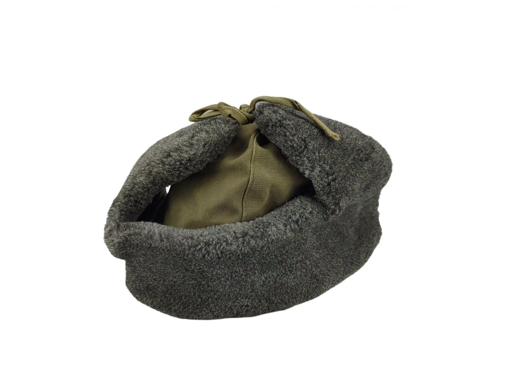 - Komfortně polstrovaná, velice hřejivá a pohodlná zimní pokrývka hlavy československého vojáka.