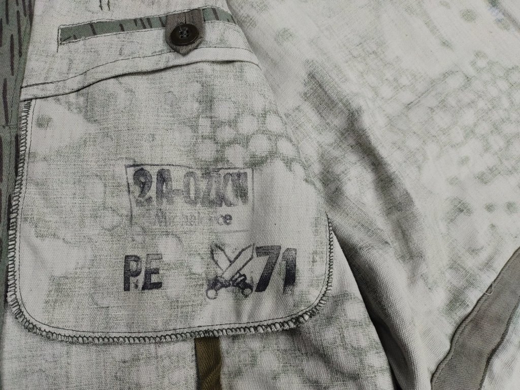 - Vzor: Maskovací vzor "jehličí", který se skládal ze šedozelené tkaniny s tmavě hnědými až černými čárkami.