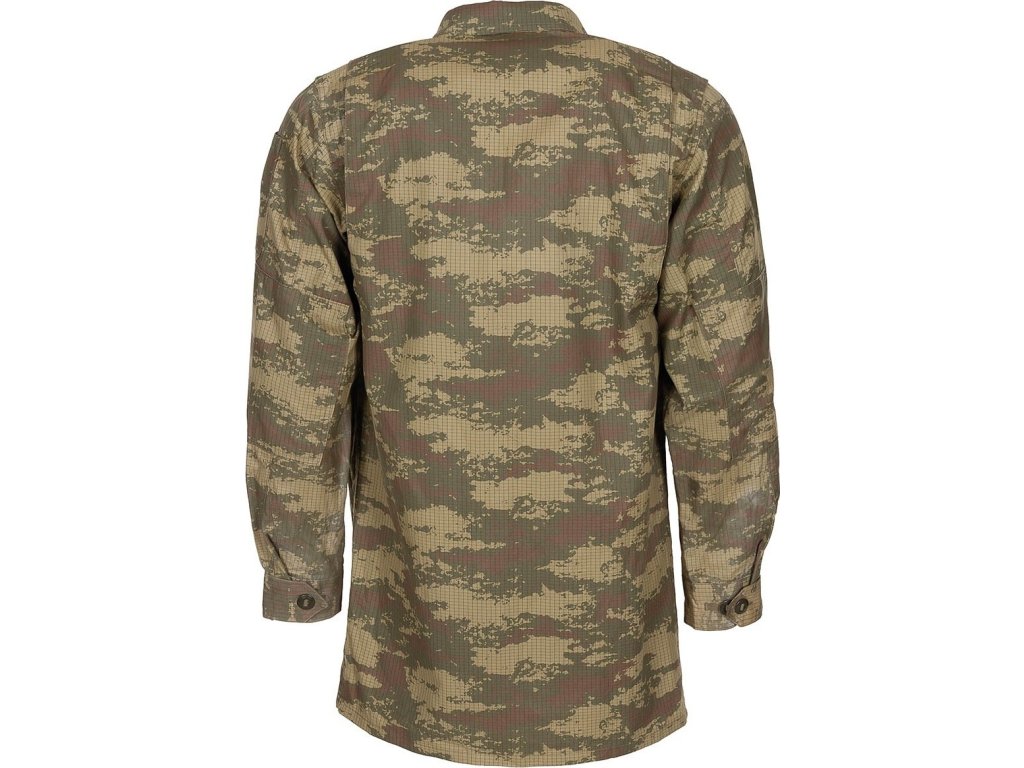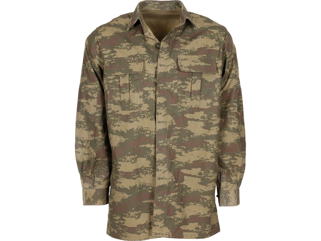 Maskovaná polní blůza, nebo také košile s dlouhým rukávem, původně určená pro turecké pozemní ozbrojené síly hladce zapadne do suchých a aridních prostředí díky kamuflážnímu vzoru M2008 "Nano" . Vyrobeny v Turecku ze speciální Rip-Stop tkaniny střední gramáže se složením 85% bavlny a 15% polyesteru. Se zesíleným materiálem v oblasti loktů pro vysokou odolnost a pevnost.