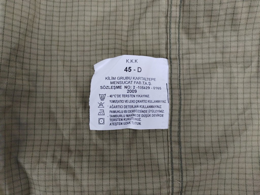 - Pocházející z výstroje pozemních ozbrojených sil turecké armády.