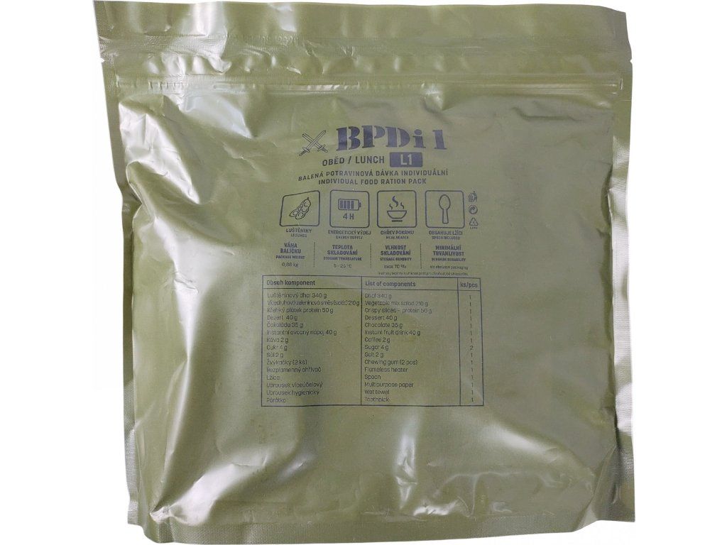 L1 (BPDi1) oběd (lunch), což je balená potravinová dávka pro jednotlivce (individual food ration pack). Jedná se o koncept vojenské potravinové dávky, který splňuje dietní potřeby Armády České republiky (AČR).