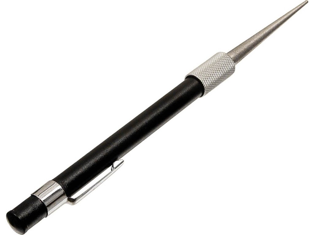 Diamantový brousek ve tvaru pera vybavený tyčí z uhlíkové oceli s diamantovým povlakem. Jedna strana tyče ve tvaru kužele se používá k broušení vroubkovaného ostří nožů. Druhá strana, válcového tvaru s drážkou a plochým hřbetem, slouží k ostření rybářských háčků.