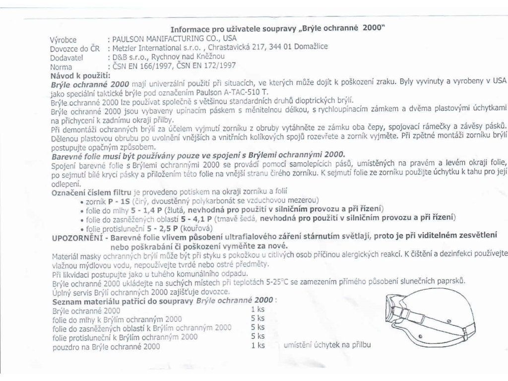 - Kompletní nové ochranné brýle včetně krycích folií a příslušenství.