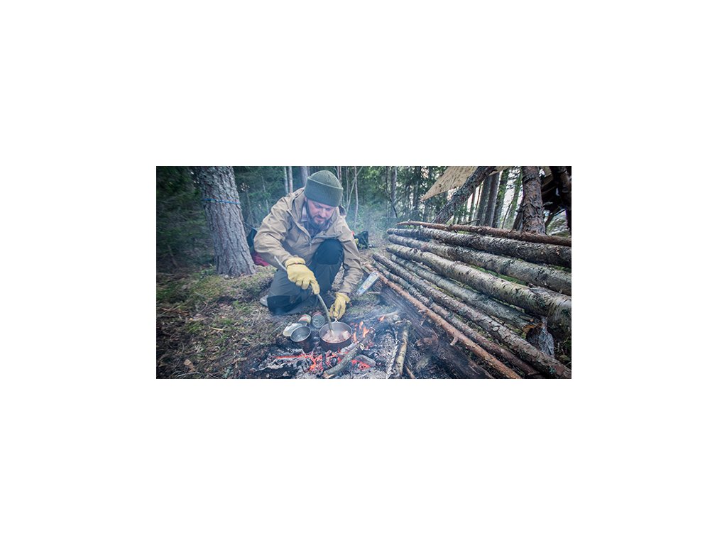 Na základě oblíbené bundy Mistral je bunda Woodsman Anorak vyrobena z DuraCanvas® - látky vhodnější pro outdoor a kempování. Přední část je vyrobena z tkaniny DuraCanvas®, která je odolná proti ohni a dostatečně odolná, aby nebyla poškozena ostrými předměty a větvemi. Zadní část bundy byla vyrobena z tkaniny StormStretch®, která poskytuje vyšší prodyšnost a lepší volnost pohybu. Celá bunda je vysoce odolná proti větru. Větrovka Woodsman má tři kapsy, včetně přední klokanky s vnitřním organizérem. Boční strany lze rozepnout na zip až do podpaží, což poskytuje snadné oblékaní. Boční zipy lze také použít jako ventilaci. Navíc má bunda nastavitelnou kapuci se štítem.
