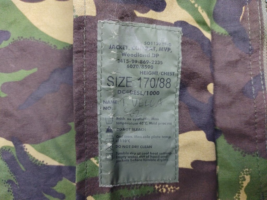 Oficiální skladovací popis: Bunda, Combat, Wet Weather, MVP, DPM. Voděodolná a prodyšná. Zapínání s ochranou proti bouřce. Přední hodnostní popruh. Připojená kapuce schovatelná do límce. Pro nošení s kalhotami TROUSERS, WET WEATHER, MVP, DPM.