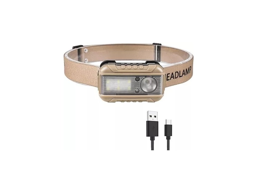 Svítilna čelová svítilna čelovka LED nabíjecí hnědá USB-C Nakida® HL-04 Coyote / Black