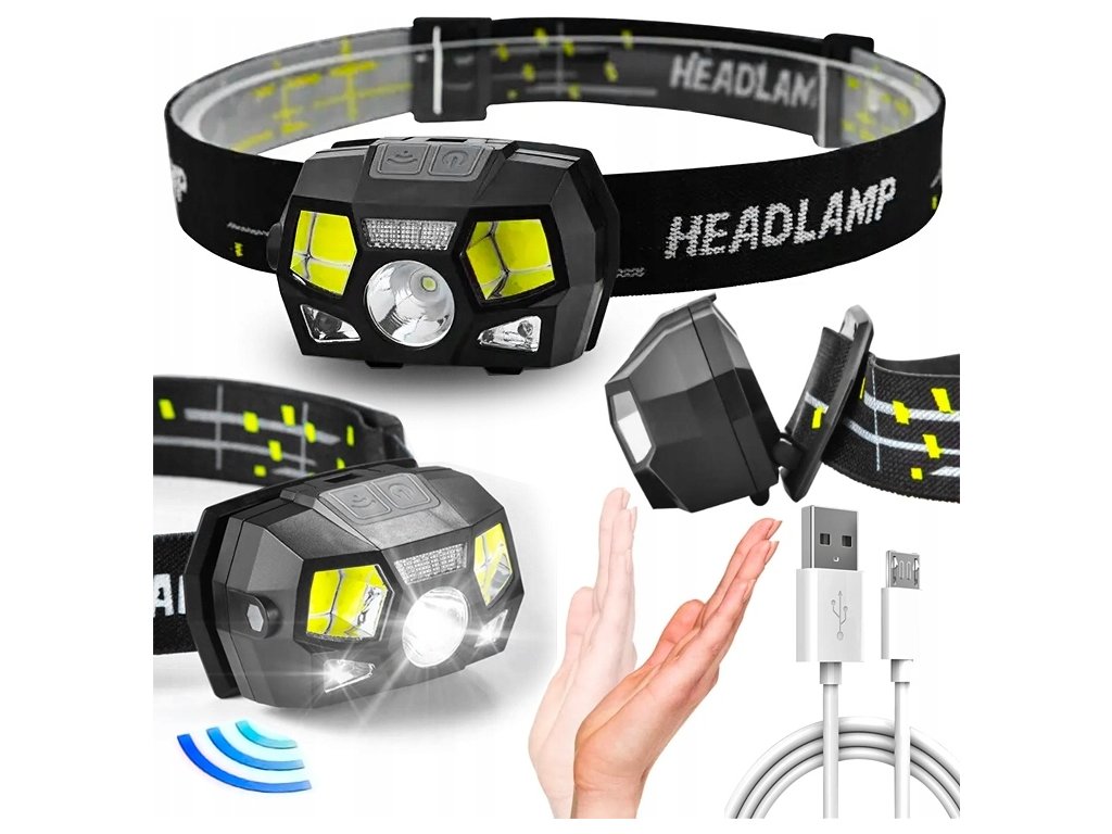Svítilna čelovka se senzorem 1200lm LED Cree Xpe+COB nabíjecí USB B-SQUL XJ4591
