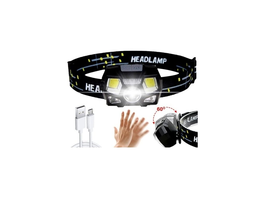 Čelovka se senzorem 1200lm LED Cree Xpe+COB nabíjecí USB