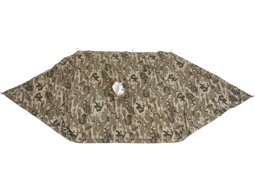 - Všestranná multifunkční nepromokavá plachta ze silného a poctivého bavlněného plátna, s oboustranným maskováním pro horské podmínky.