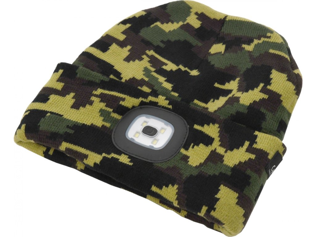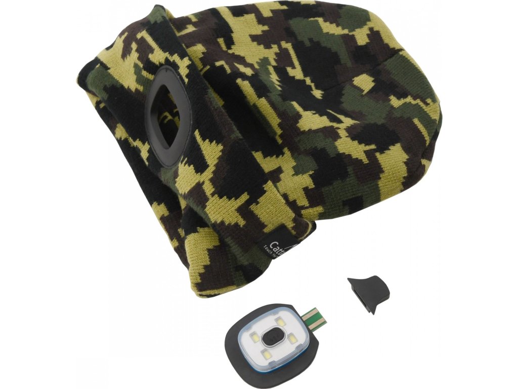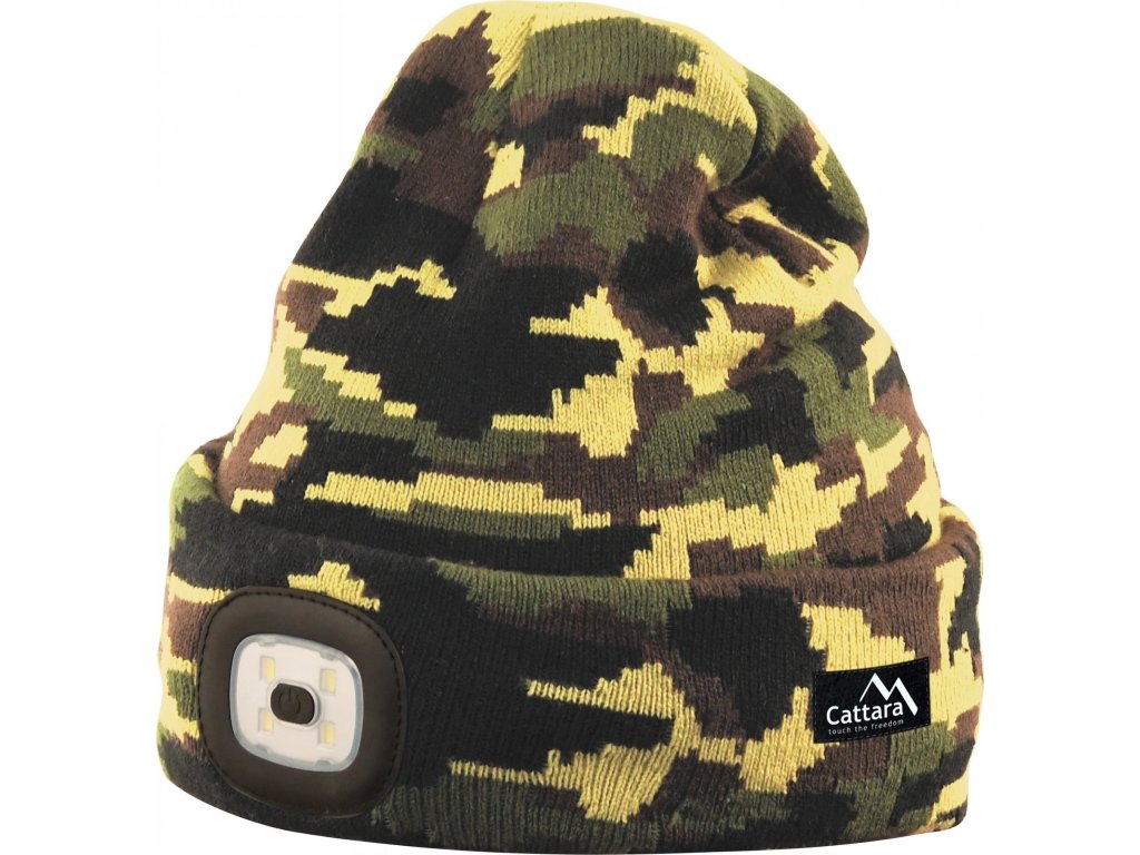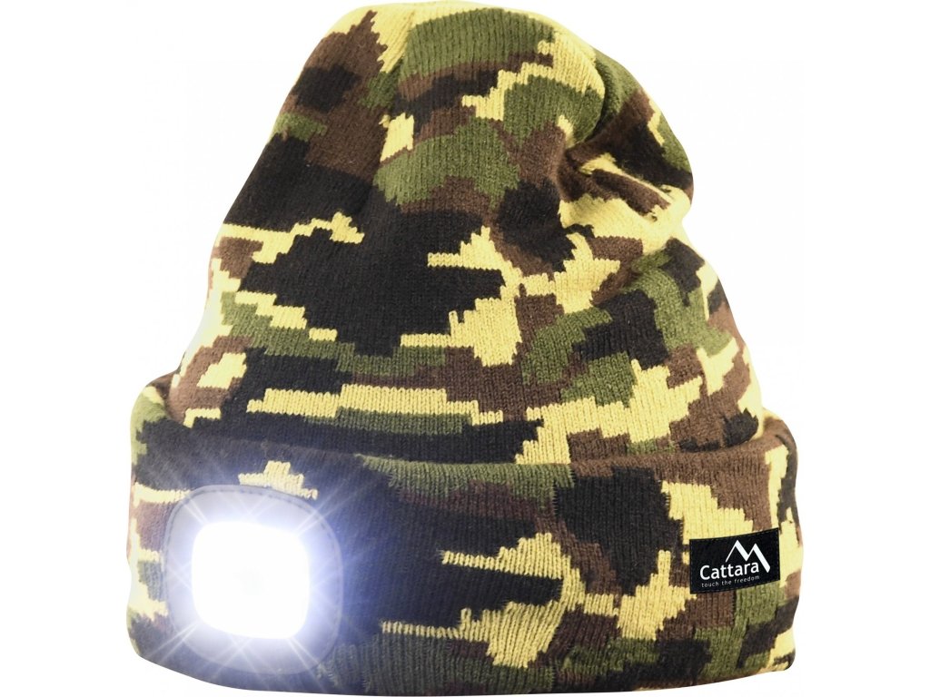 Čepice (kulich) zimní camo woodland ARMY s LED svítilnou USB nabíjení Cattara