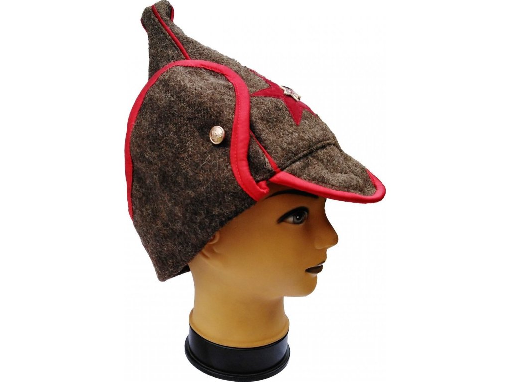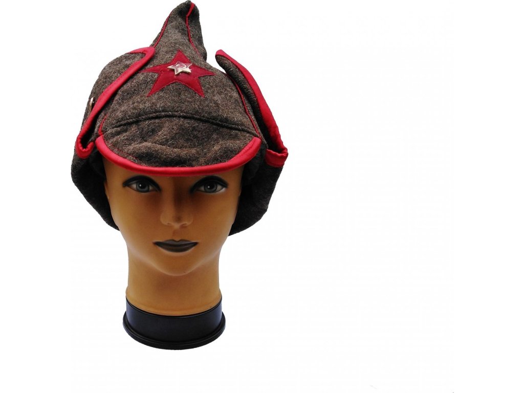 Čepice Budenovka Rusko zimní khaki s odznakem a červenou hvězdou
