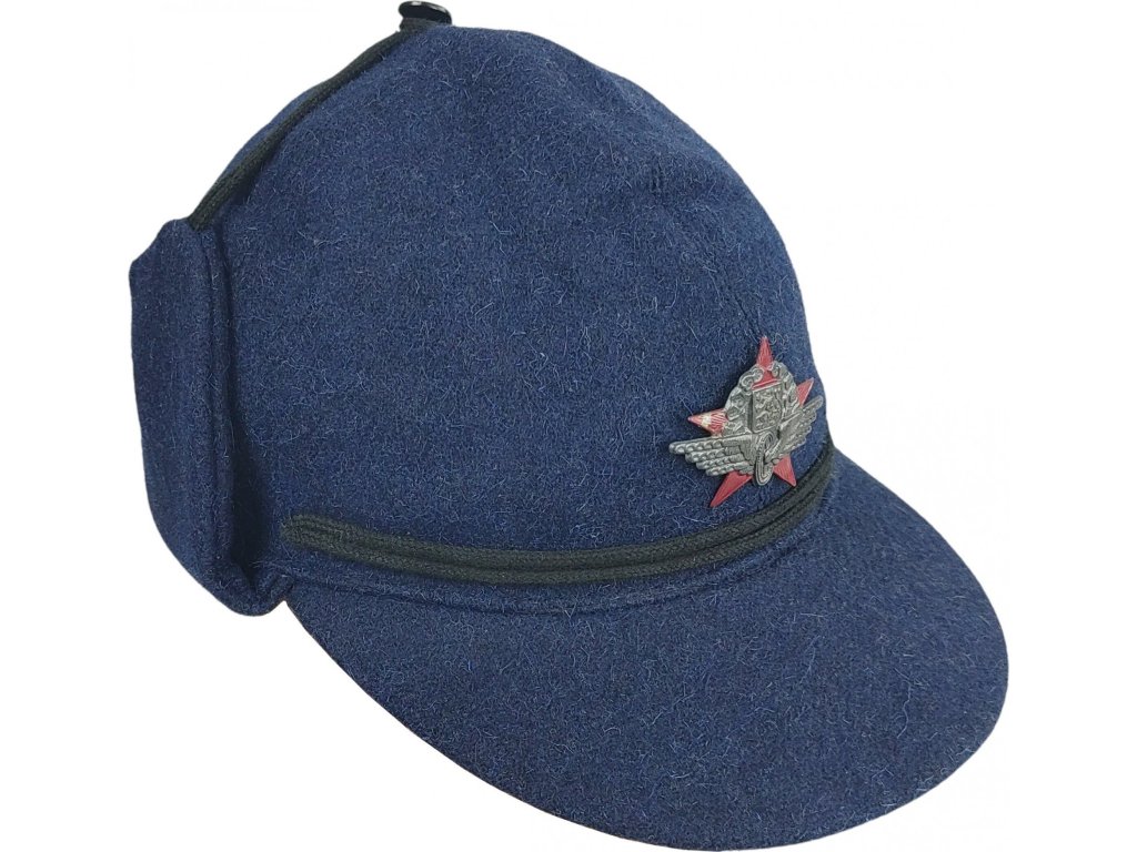 Stejnokrojová čepice pracovníků ČSD (Československé dráhy). Ušanka s klopami na uši, vyrobena z hutné vlněné tkaniny tmavě modré barvy. S vnitřní podšívkou z hladké viskózy pro vysoký komfort při nošení. Některé varianty mají na čelní straně čepicový odznak ve tmavém nebo světlém provedení s červeným smaltem.