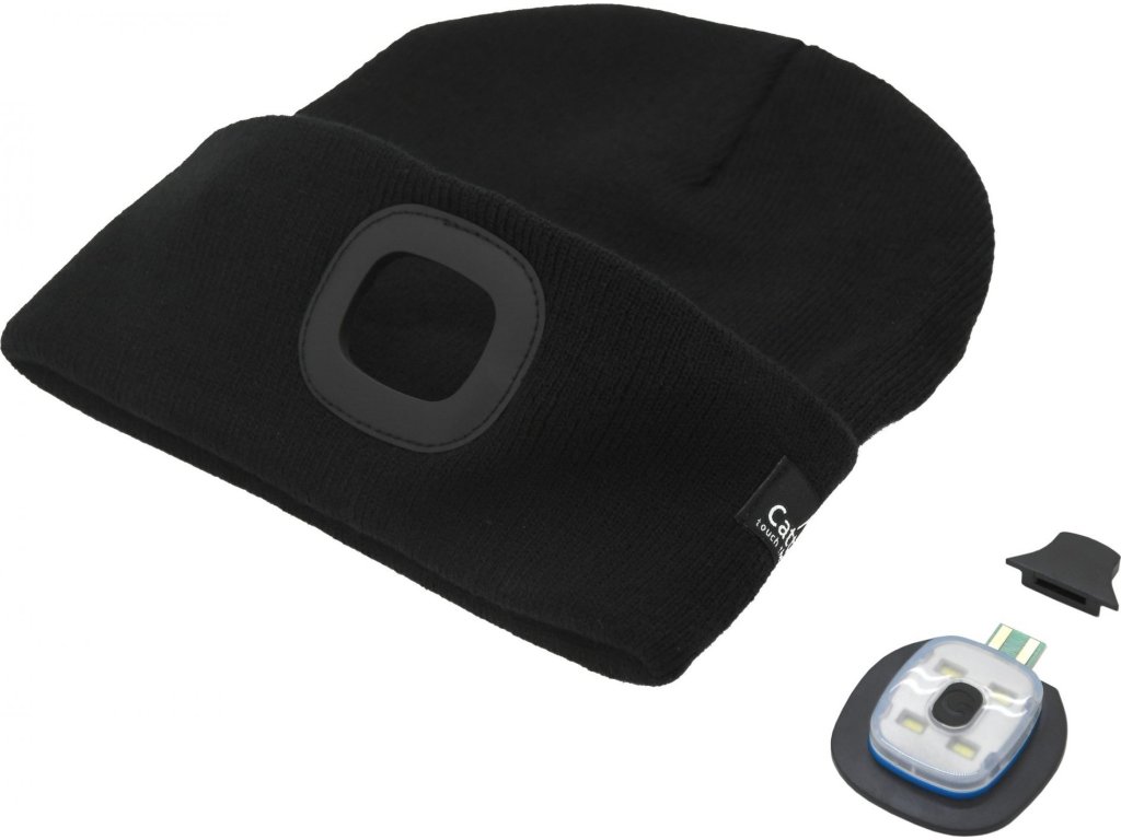 Čepice zimní kulich BLACK s LED svítilnou USB nabíjení Cattara