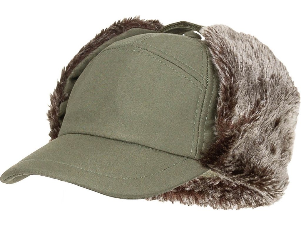 Čepice zimní ušanka s kšiltem a kožešinou FoX® Outdoor Oliv