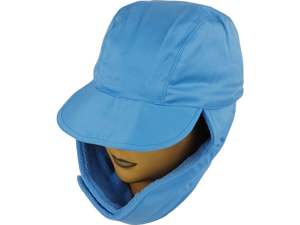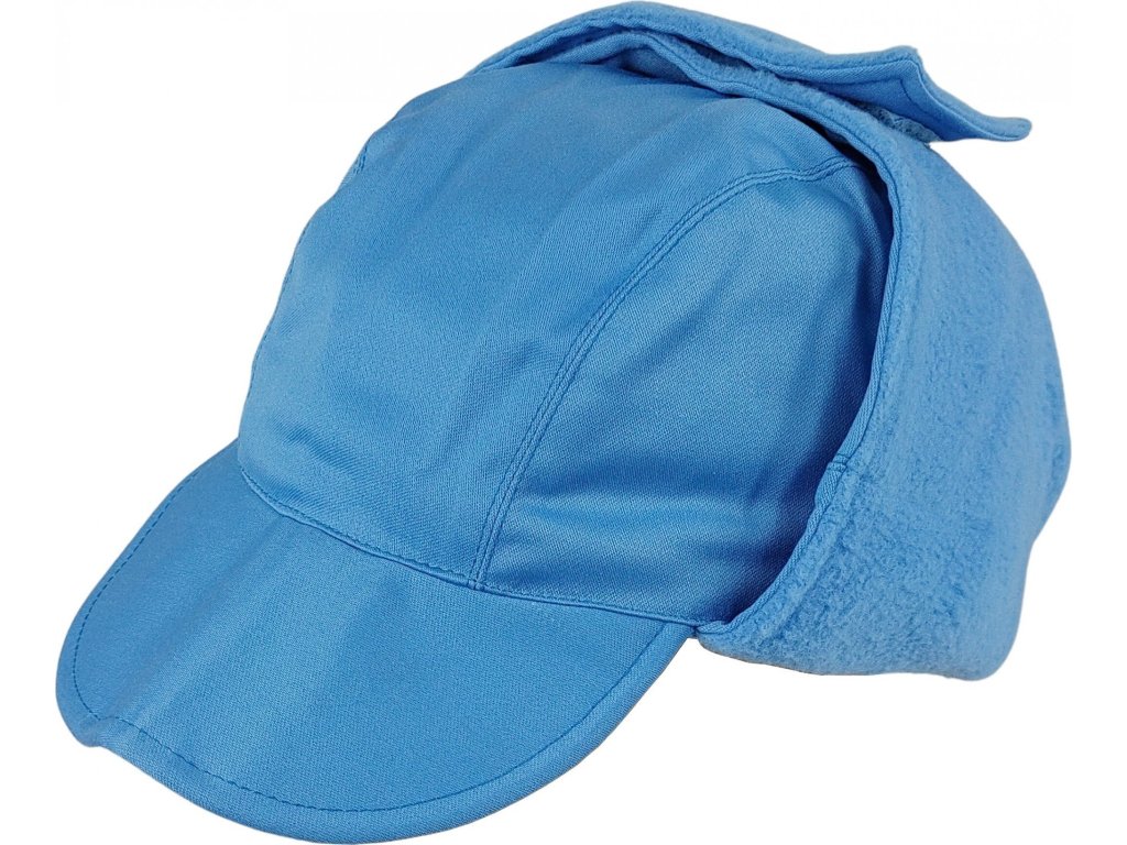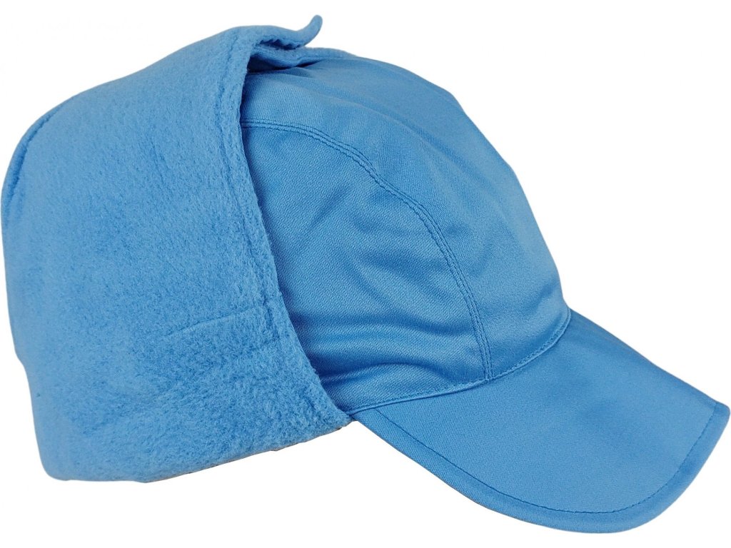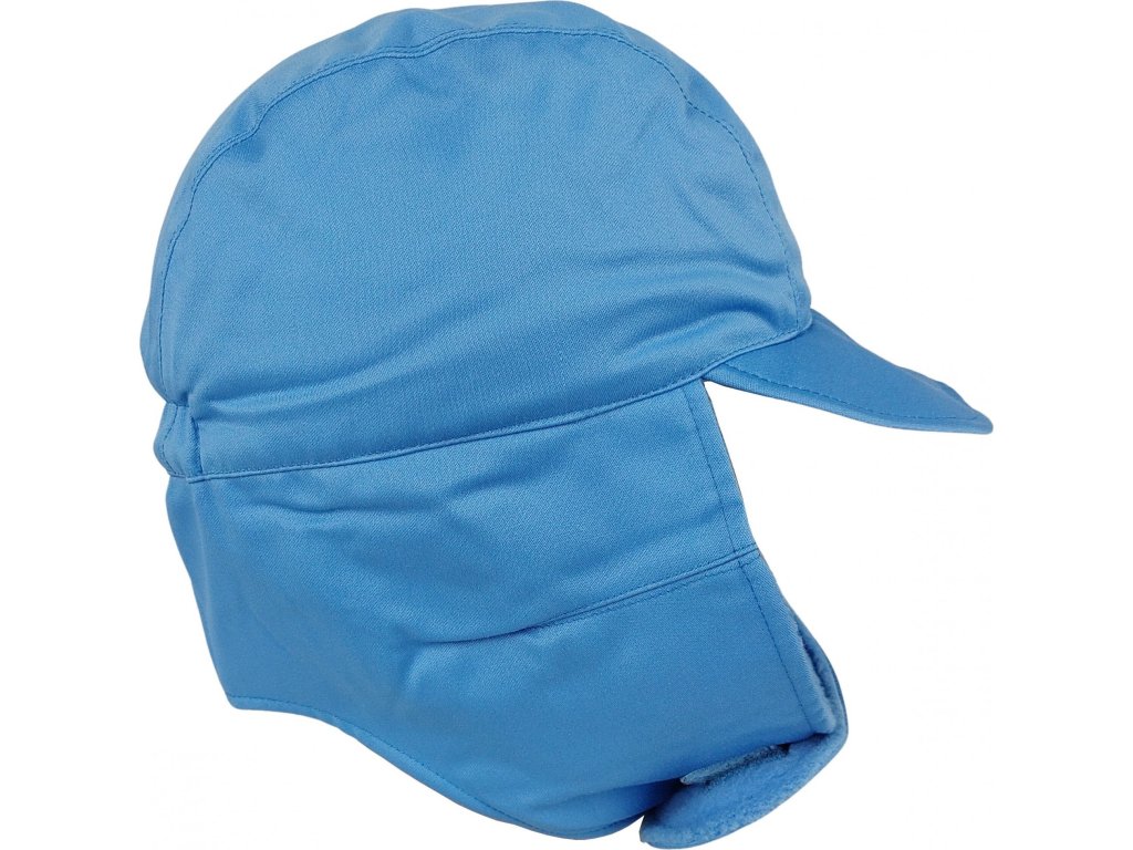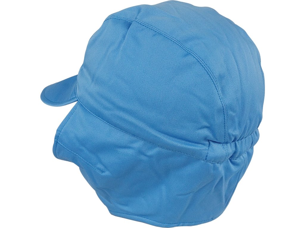 Belgická světle modrá čepice s chráničem uší a zátylku, určena k nošení v chladném počasí během mírových misí OSN v chladnějších oblastech.