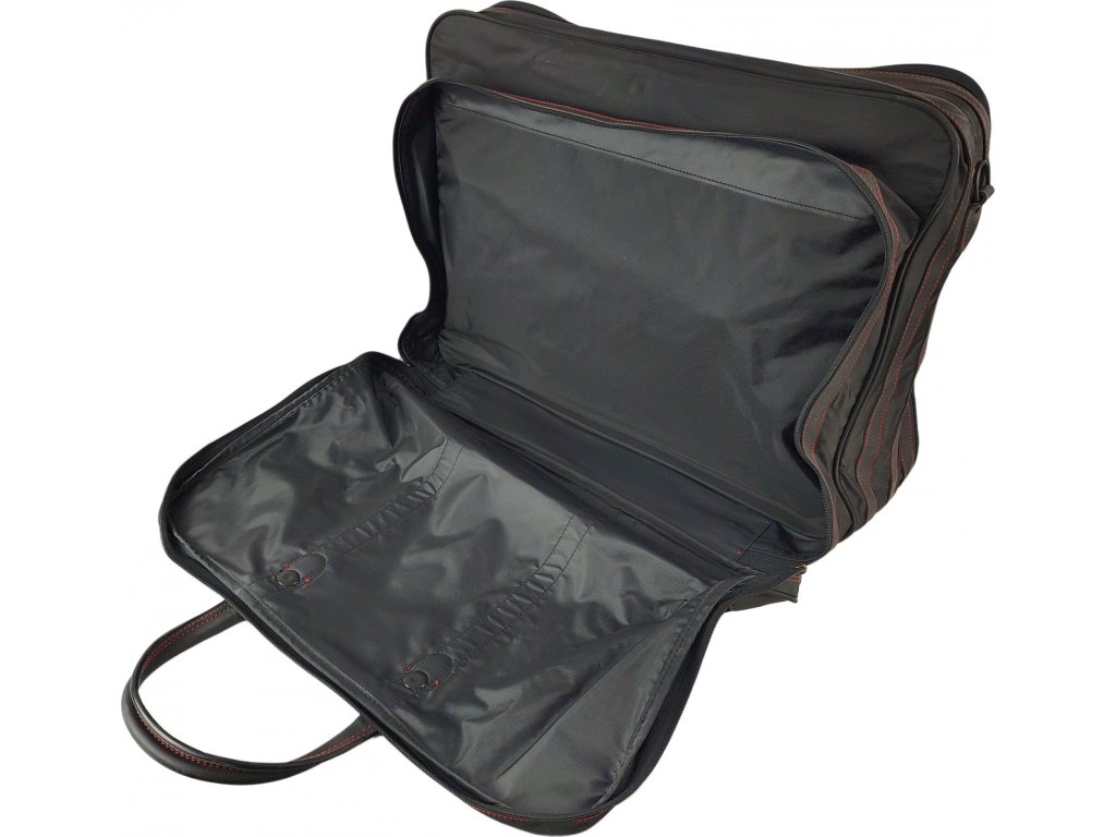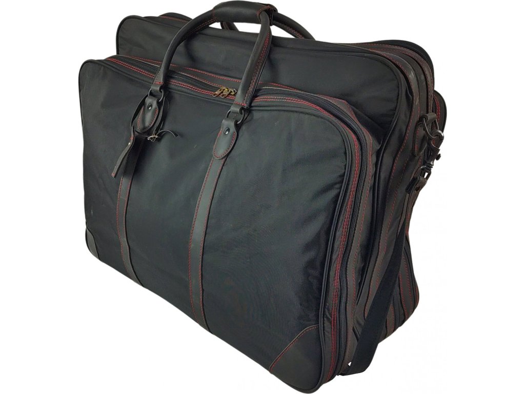 Nylonový materiál cestovního zavazadla udrží uloženou uniformu / oděv / obuv / ošacení nepomačkané a dokonale v suchu. Černé provedení s červenými liniemi, elegantní a typické pro italskou policii.
