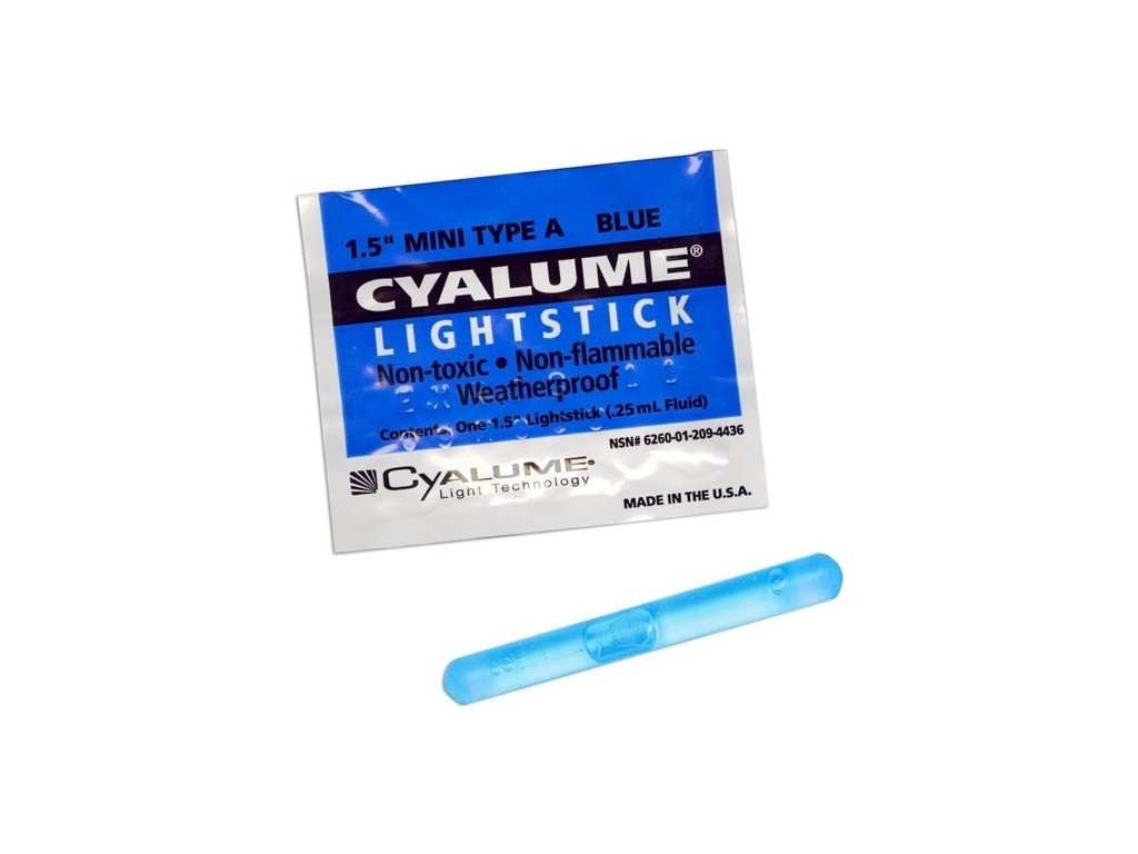 Chemické světlo modré balení 50ks Cyalume® ChemLight™ LightStick Blue Mini Size 1,5″ (3.75 cm) US originál