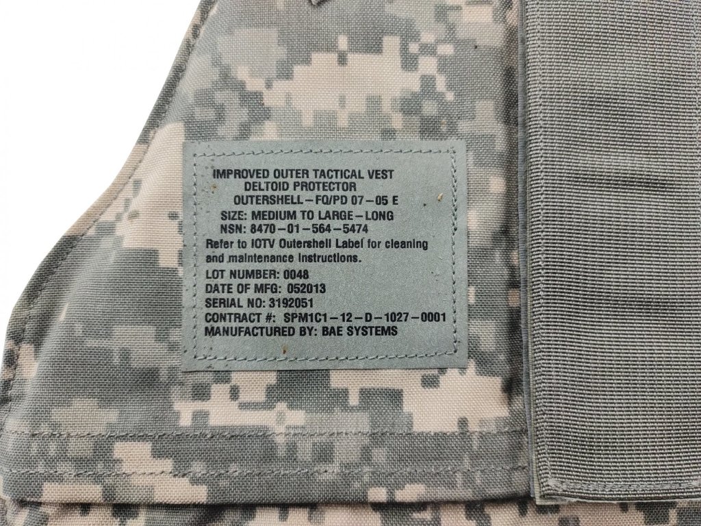 Originální balistický chránič deltového svalu pro americkou taktickou vestu IOTV (Improved Outer Tactical Vest) v univerzální pixelové kamufláži UCP Digital.