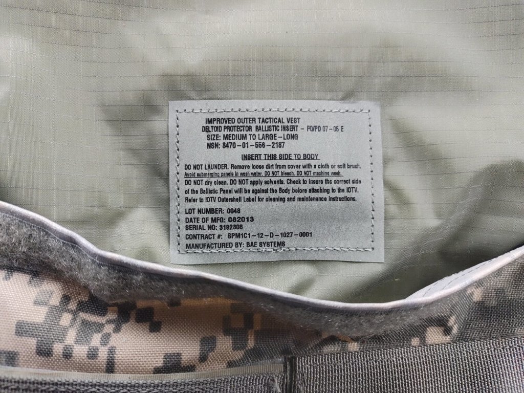 - IMPROVED OUTER TACTICAL VEST DELTOID PROTECTOR BALLISTIC INSERT - FQ/PD 07-05 E