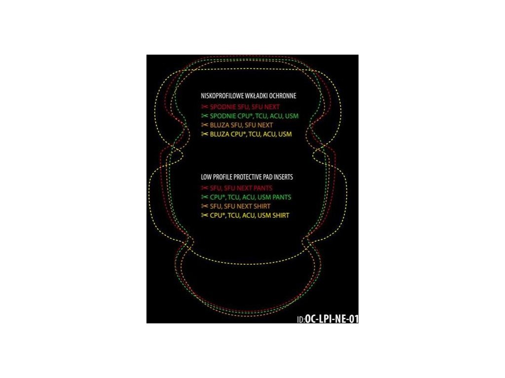 - po obstřižení, dle přidávané šablony, lze chrániče používat v kalhotách a blůzách SFU,CPU,TCU,ACU,USM