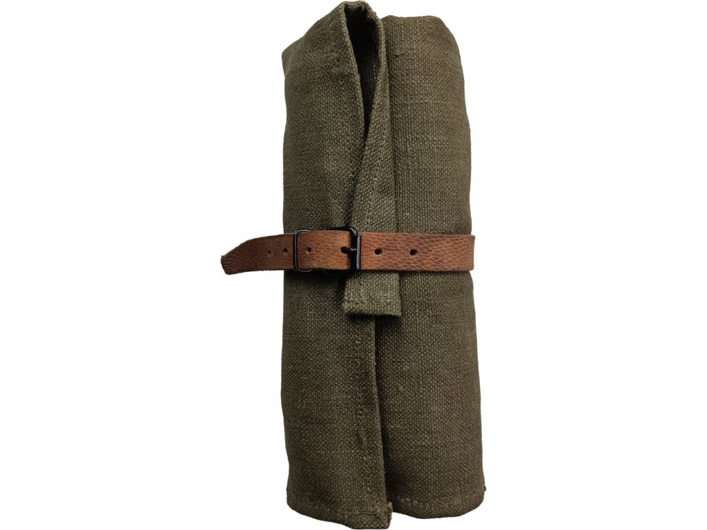 - Plátěné rolovací pouzdro se zapínáním na popruh s trnem.
