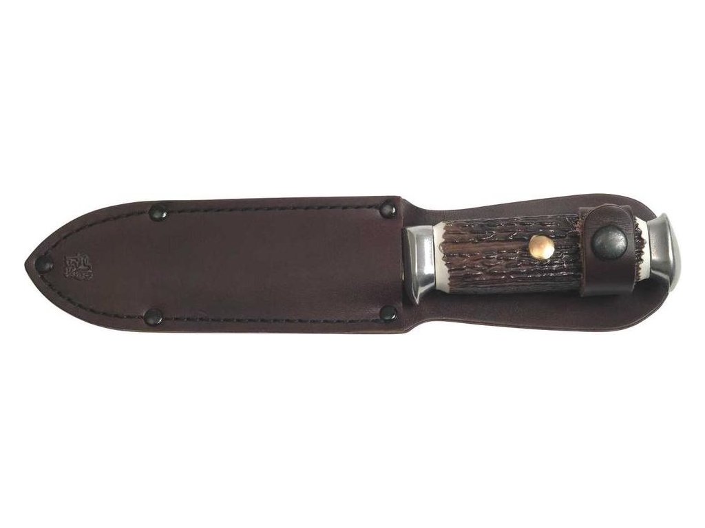 - Střenka této lovecké dýky je velmi zdařilou imitací jeleního parohu.