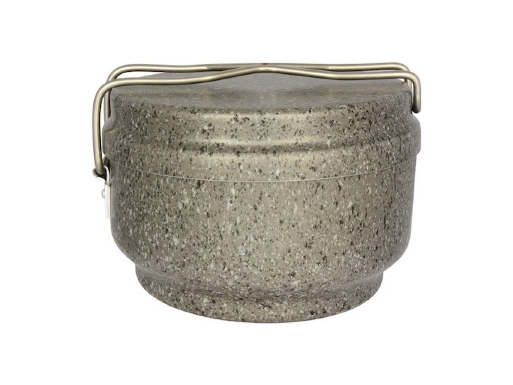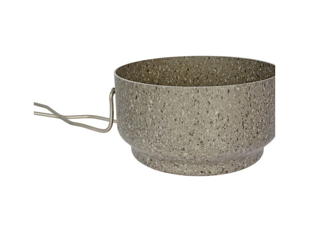 Moderní varianta klasického „armádního“ ešusu v designu STONE. Nádobí se skládá ze dvou dílů (miska + víčko). Sada je vyrobena z hliníku, který má po obou stranách tenkou vrstvu PTFE (tedy teflonu) a v designu kamene. Hlavní a nezpochybnitelnou předností PTFE je nenáročná údržba a pohodlné vaření – pokrm se snadno připraví a nepřipaluje.